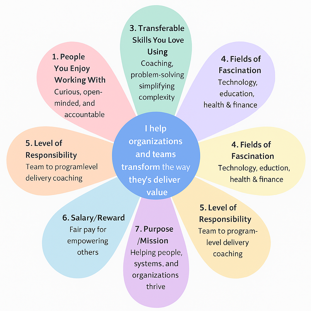 “I help organizations and teams transform the way they deliver value — by coaching people to collaborate, simplify, and achieve more through Agile principles, empathy, and continuous learning.”